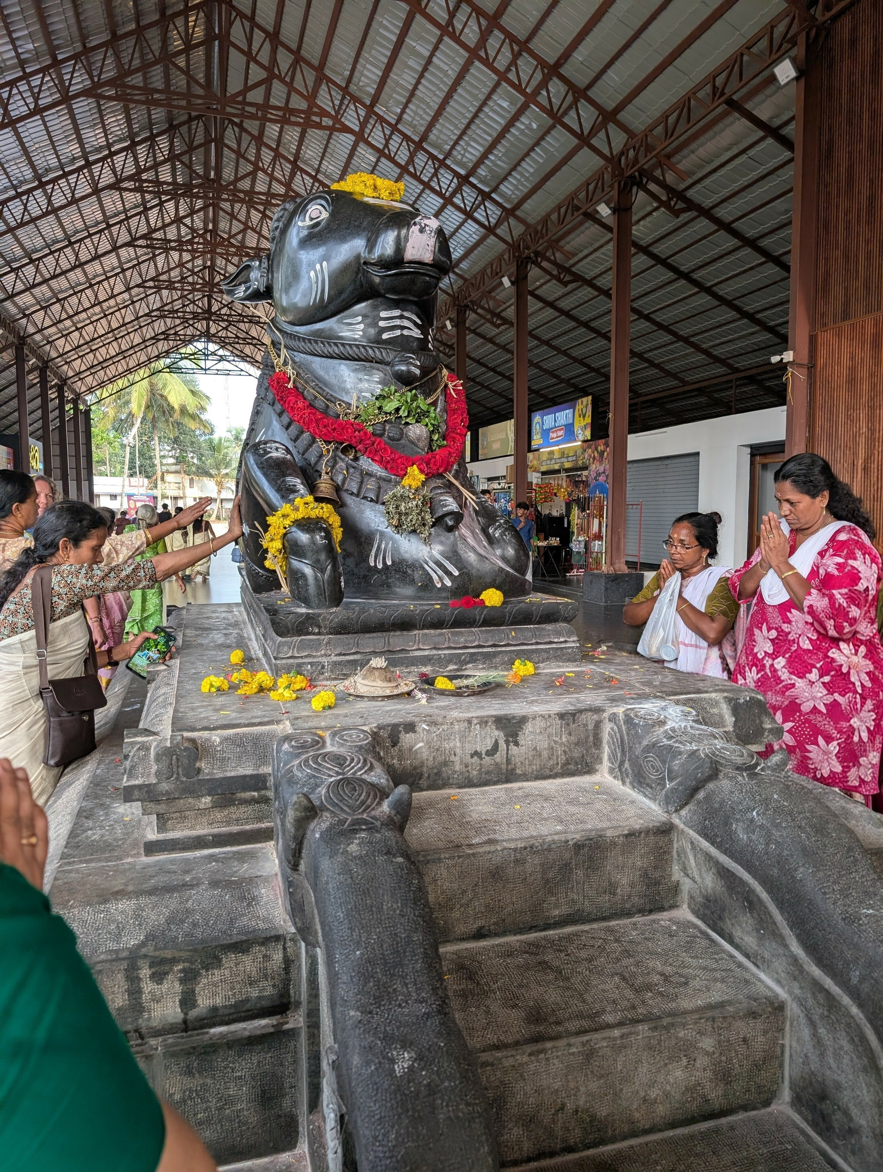 - Nandi, statue at the entrance to one of the Śiva temples we went to on Monday.